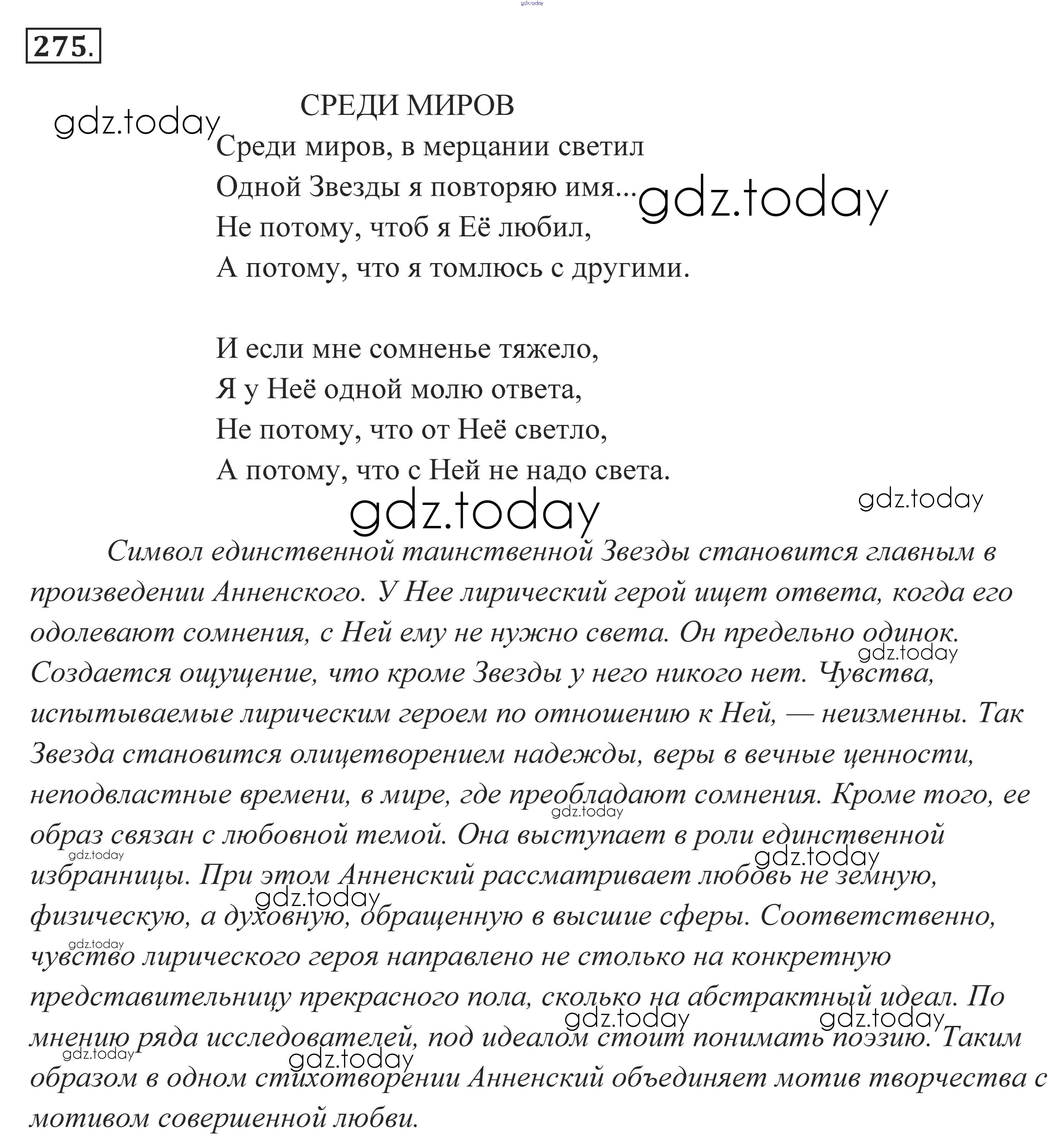 На страницах сайта gdz.today вы найдете учебный и вспомогательный материал, направленный на улучшения знаний школьной программы. ГДЗ - онлайн мир знаний Решение к упражнениям 275 Учебнику по Русскому языку для 10-11 класса Власенков, Рыбченкова Базовый уровень Просвещение 2014