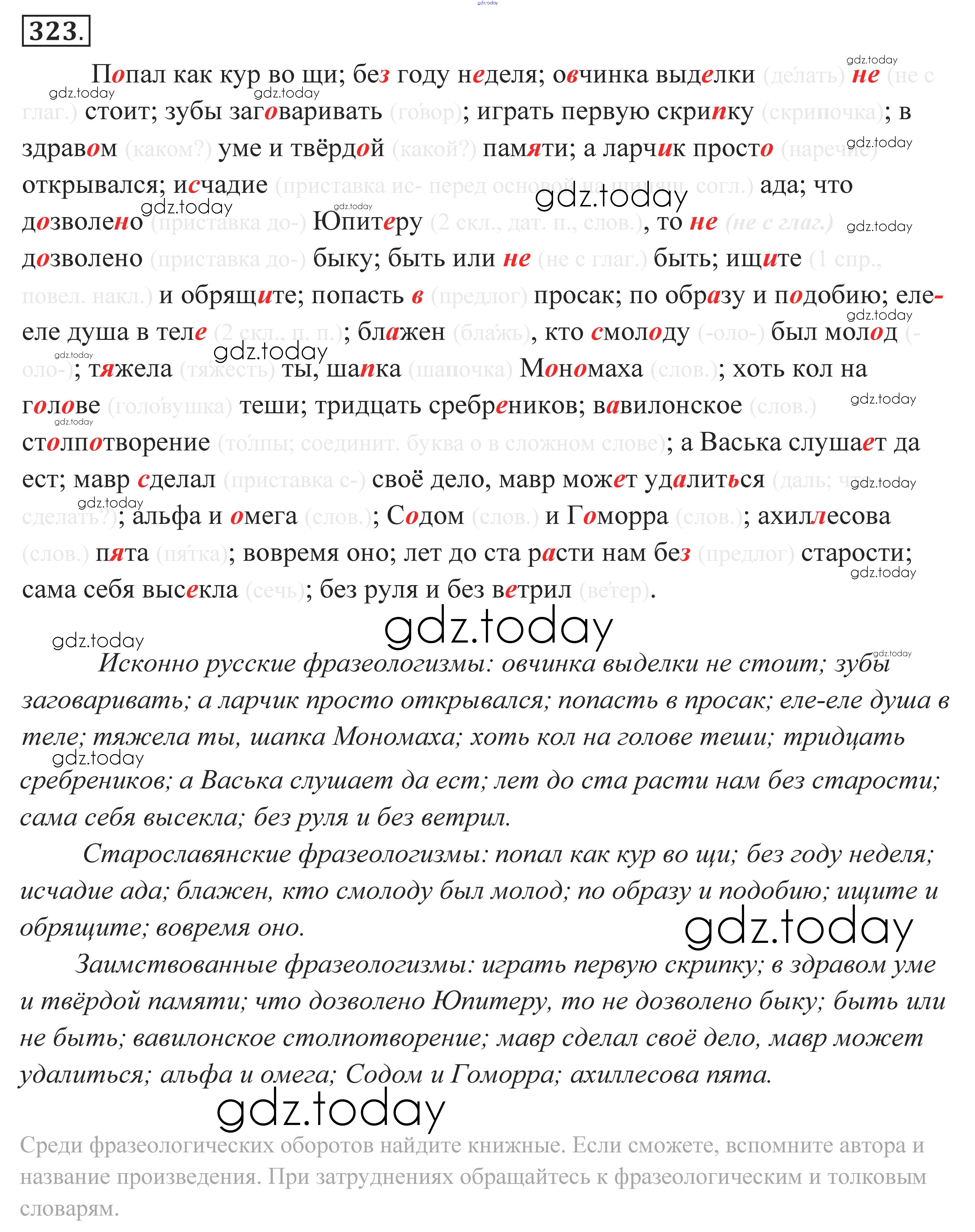 На страницах сайта gdz.today вы найдете учебный и вспомогательный материал, направленный на улучшения знаний школьной программы. ГДЗ - онлайн мир знаний Решение к упражнениям 323 Учебнику по Русскому языку для 10-11 класса Власенков, Рыбченкова Базовый уровень Просвещение 2014