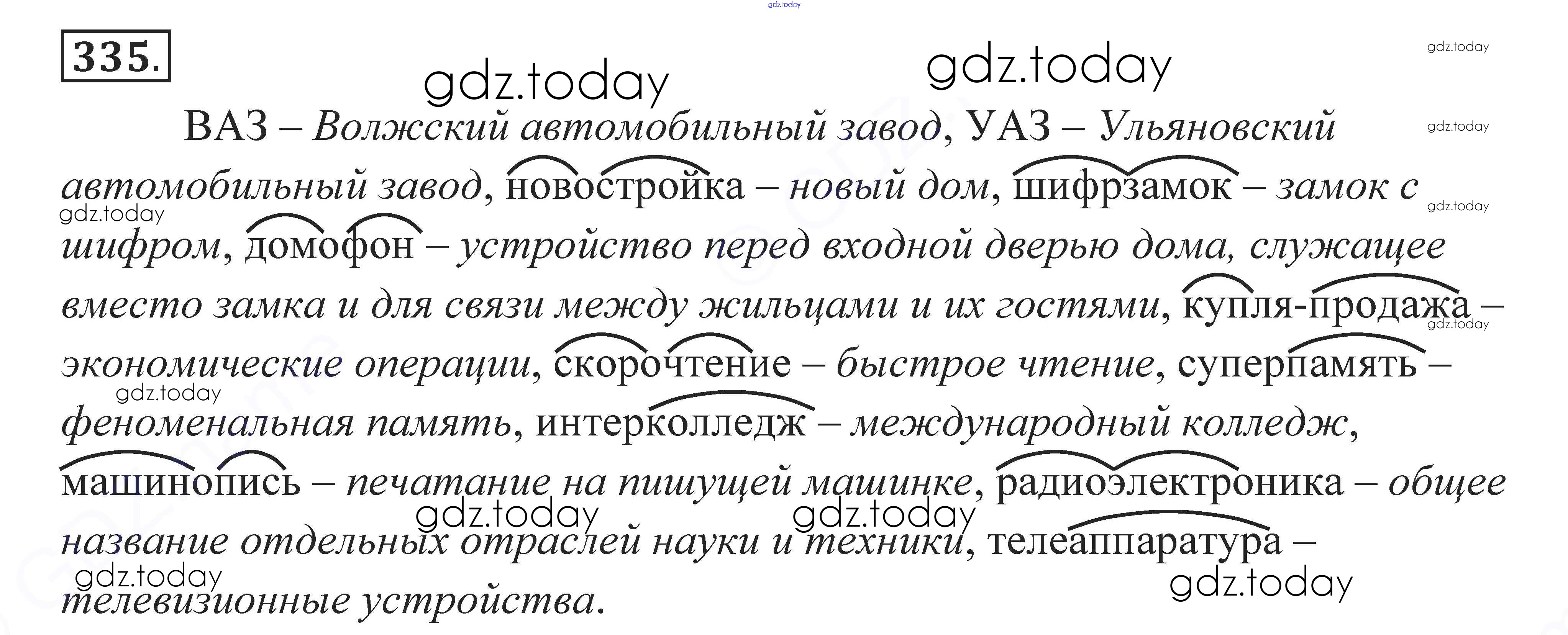 На страницах сайта gdz.today вы найдете учебный и вспомогательный материал, направленный на улучшения знаний школьной программы. ГДЗ - онлайн мир знаний Решение к упражнениям 335 Учебнику по Русскому языку для 10-11 класса Власенков, Рыбченкова Базовый уровень Просвещение 2014