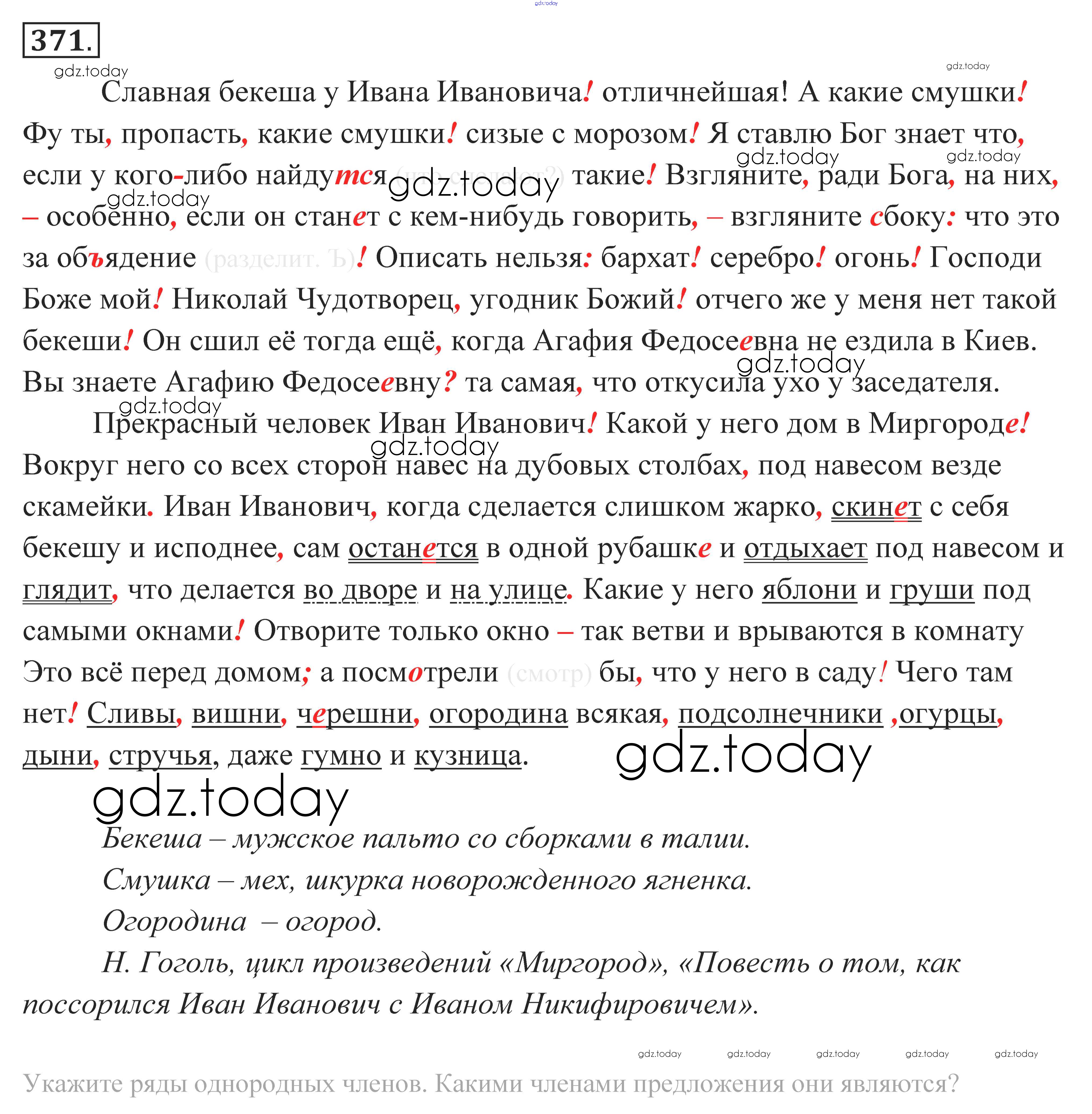 Ответы к Решение к упражнениям 371 Учебнику по Русскому языку для 10-11 класса Власенков, Рыбченкова Базовый уровень Просвещение 2014