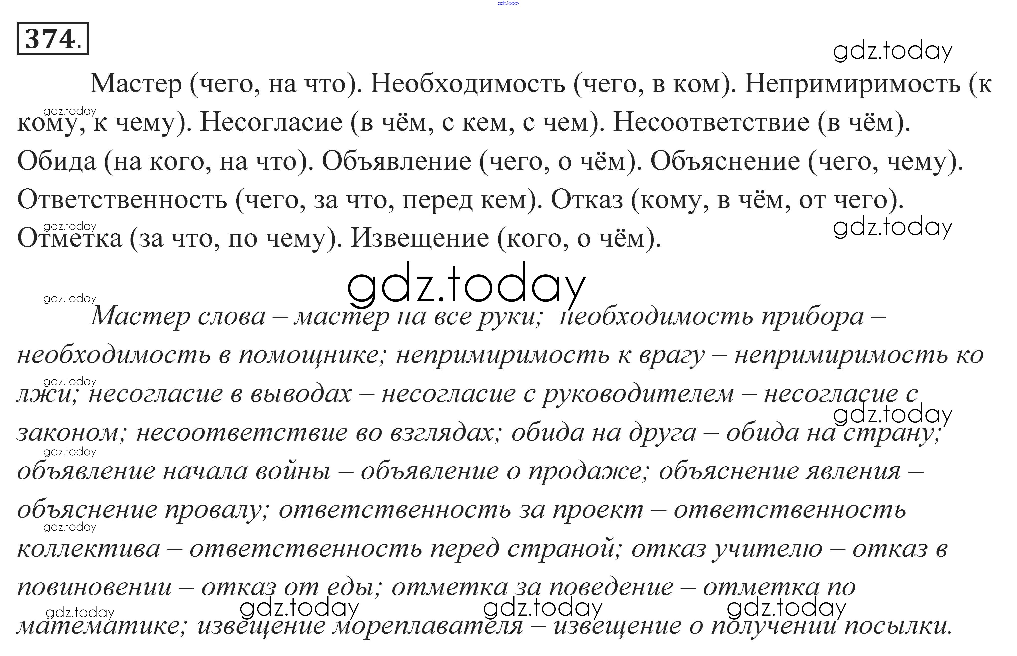 На страницах сайта gdz.today вы найдете учебный и вспомогательный материал, направленный на улучшения знаний школьной программы. ГДЗ - онлайн мир знаний Решение к упражнениям 374 Учебнику по Русскому языку для 10-11 класса Власенков, Рыбченкова Базовый уровень Просвещение 2014