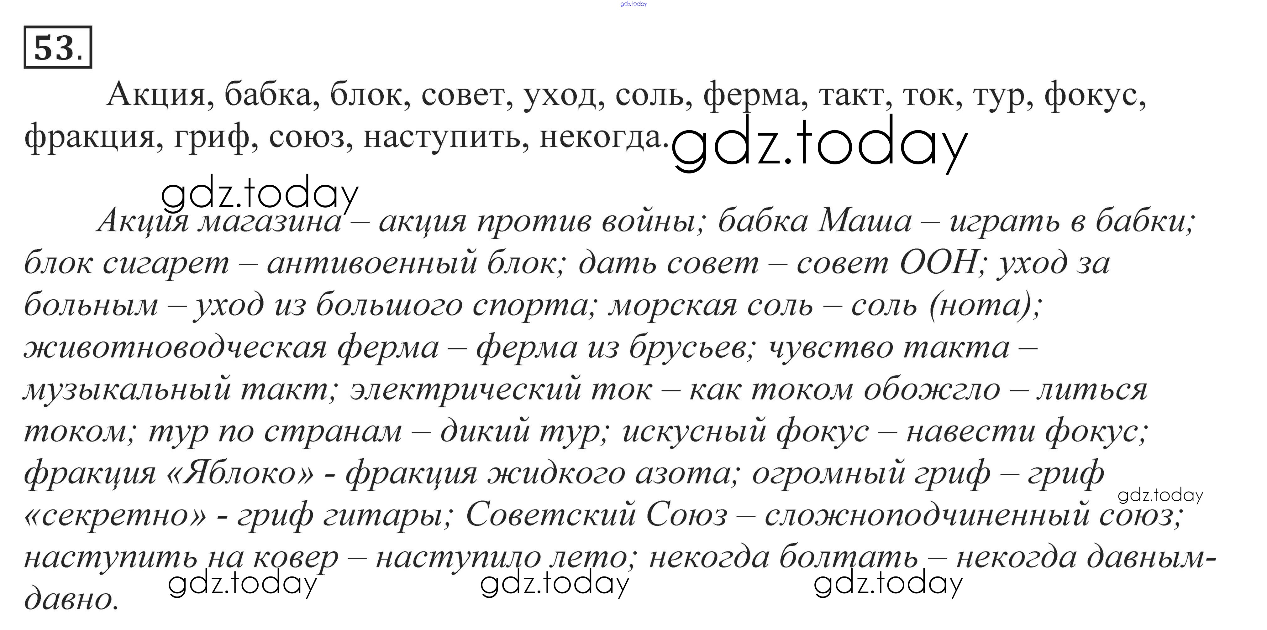 На страницах сайта gdz.today вы найдете учебный и вспомогательный материал, направленный на улучшения знаний школьной программы. ГДЗ - онлайн мир знаний Решение к упражнениям 53 Учебнику по Русскому языку для 10-11 класса Власенков, Рыбченкова Базовый уровень Просвещение 2014