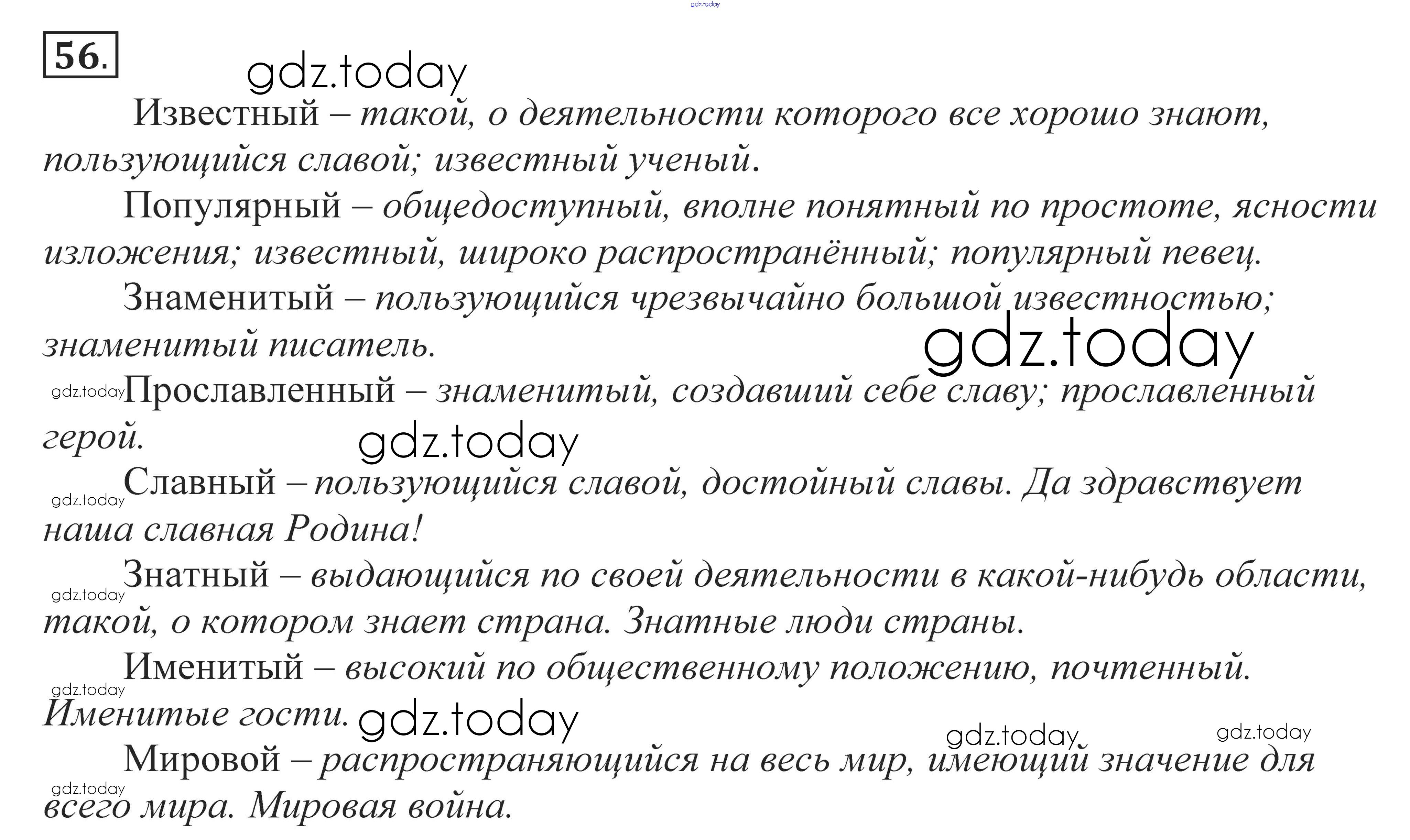 На страницах сайта gdz.today вы найдете учебный и вспомогательный материал, направленный на улучшения знаний школьной программы. ГДЗ - онлайн мир знаний Решение к упражнениям 56 Учебнику по Русскому языку для 10-11 класса Власенков, Рыбченкова Базовый уровень Просвещение 2014