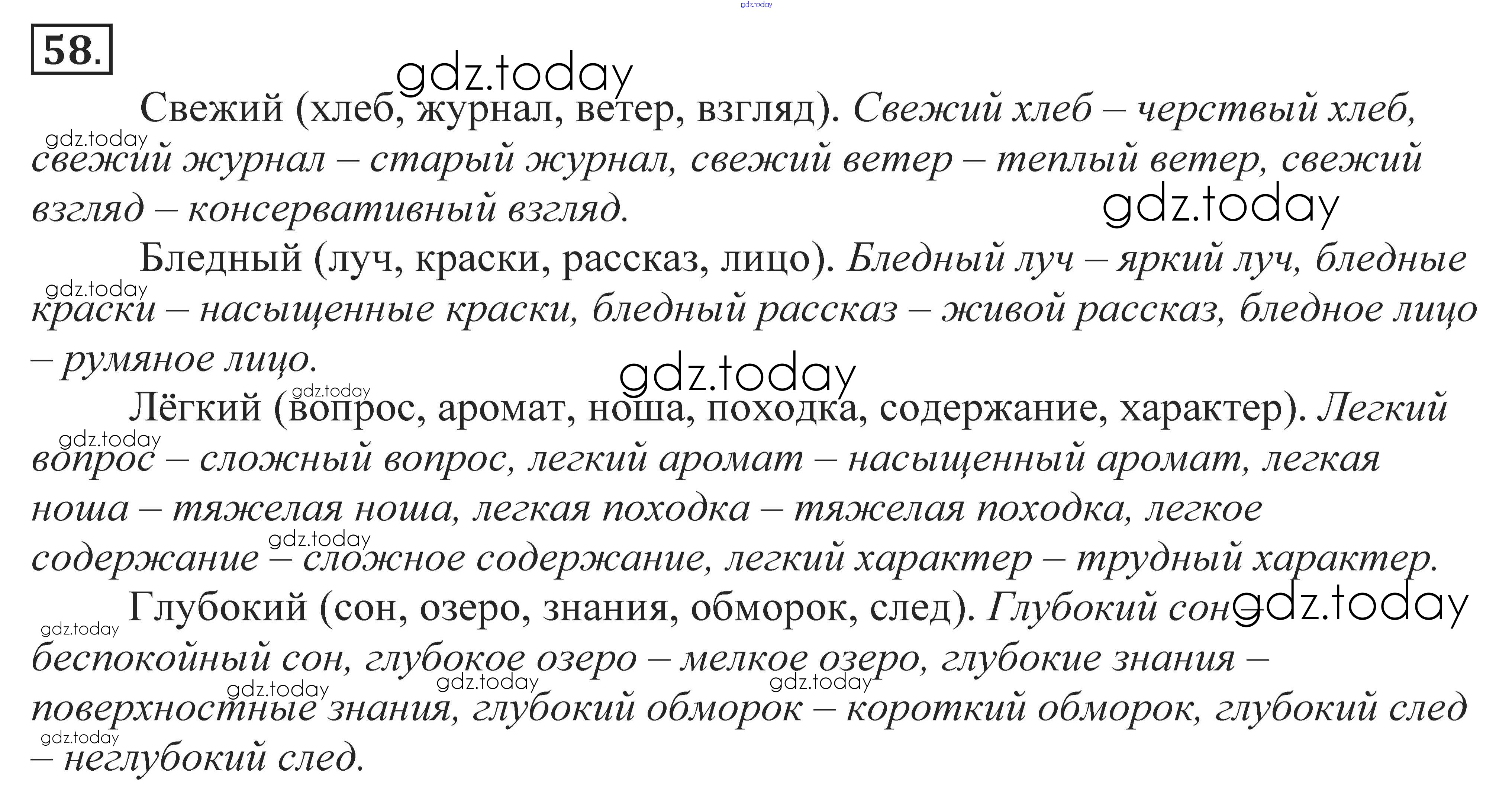 На страницах сайта gdz.today вы найдете учебный и вспомогательный материал, направленный на улучшения знаний школьной программы. ГДЗ - онлайн мир знаний Решение к упражнениям 58 Учебнику по Русскому языку для 10-11 класса Власенков, Рыбченкова Базовый уровень Просвещение 2014