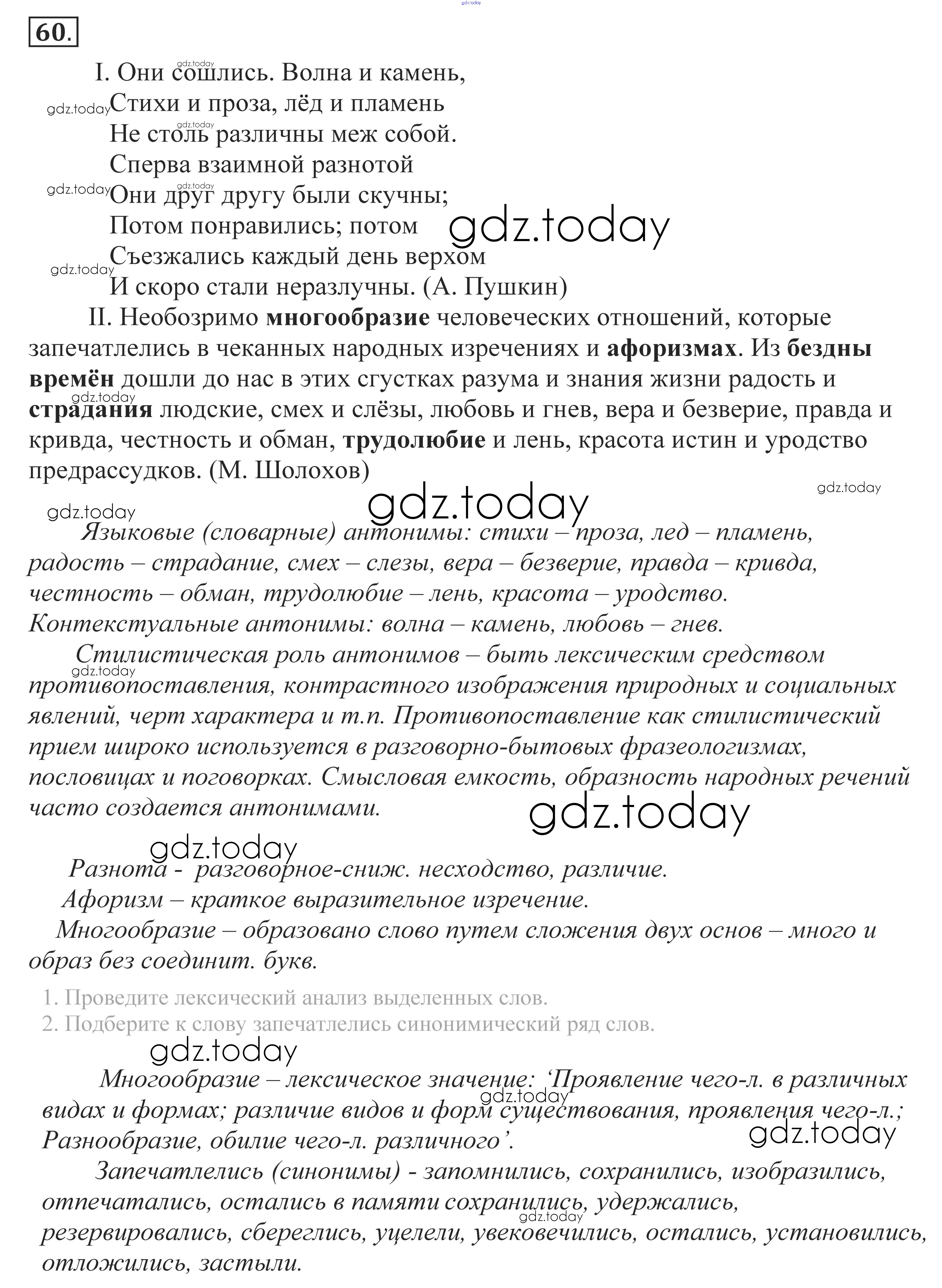 На страницах сайта gdz.today вы найдете учебный и вспомогательный материал, направленный на улучшения знаний школьной программы. ГДЗ - онлайн мир знаний Решение к упражнениям 60 Учебнику по Русскому языку для 10-11 класса Власенков, Рыбченкова Базовый уровень Просвещение 2014