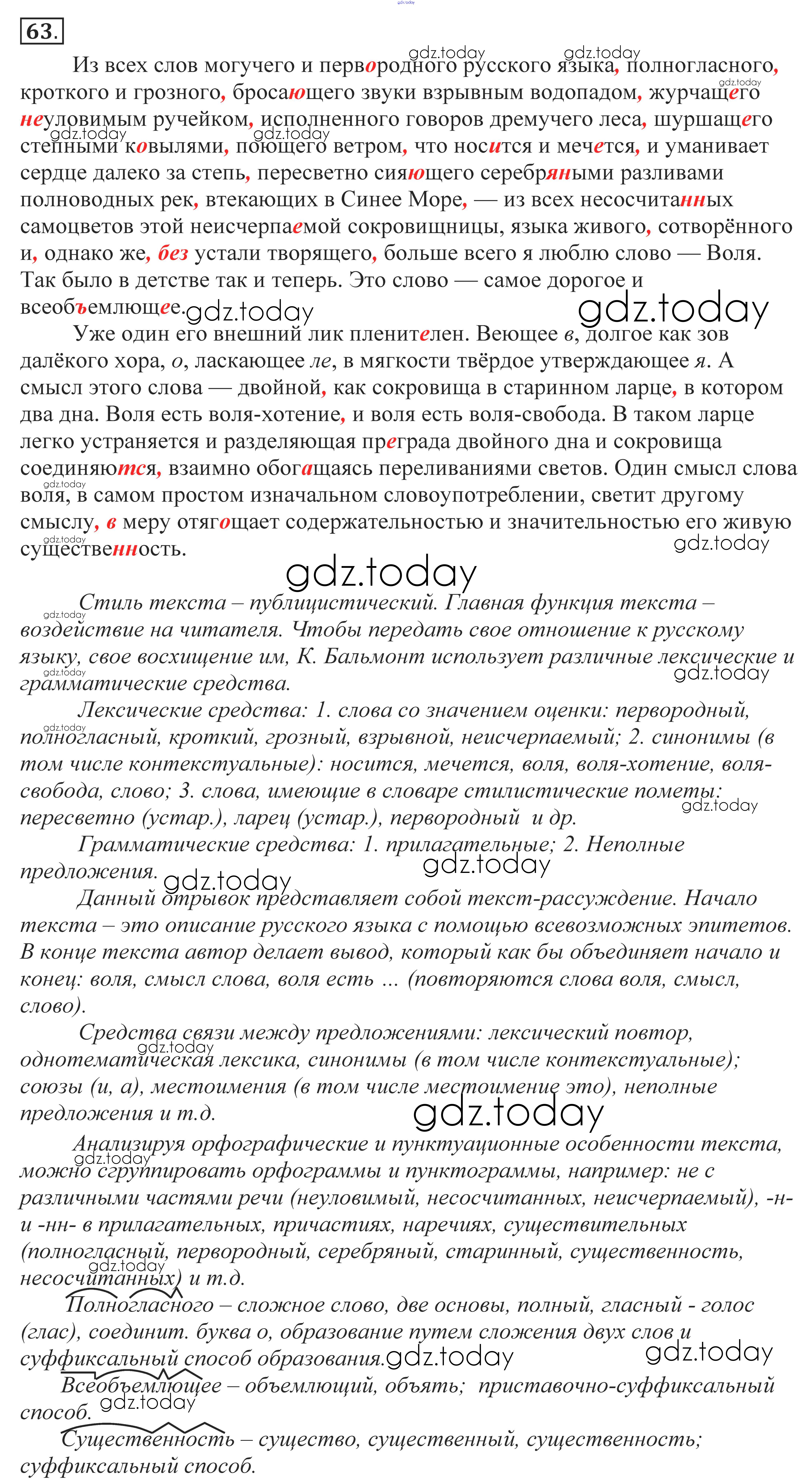 На страницах сайта gdz.today вы найдете учебный и вспомогательный материал, направленный на улучшения знаний школьной программы. ГДЗ - онлайн мир знаний Решение к упражнениям 63 Учебнику по Русскому языку для 10-11 класса Власенков, Рыбченкова Базовый уровень Просвещение 2014