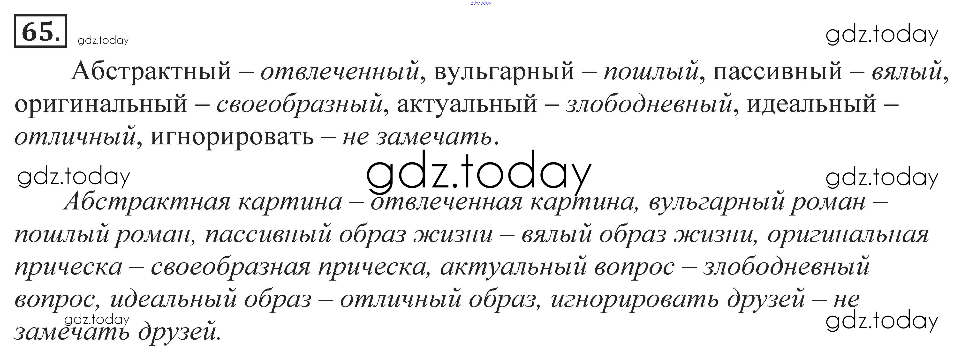 На страницах сайта gdz.today вы найдете учебный и вспомогательный материал, направленный на улучшения знаний школьной программы. ГДЗ - онлайн мир знаний Решение к упражнениям 65 Учебнику по Русскому языку для 10-11 класса Власенков, Рыбченкова Базовый уровень Просвещение 2014