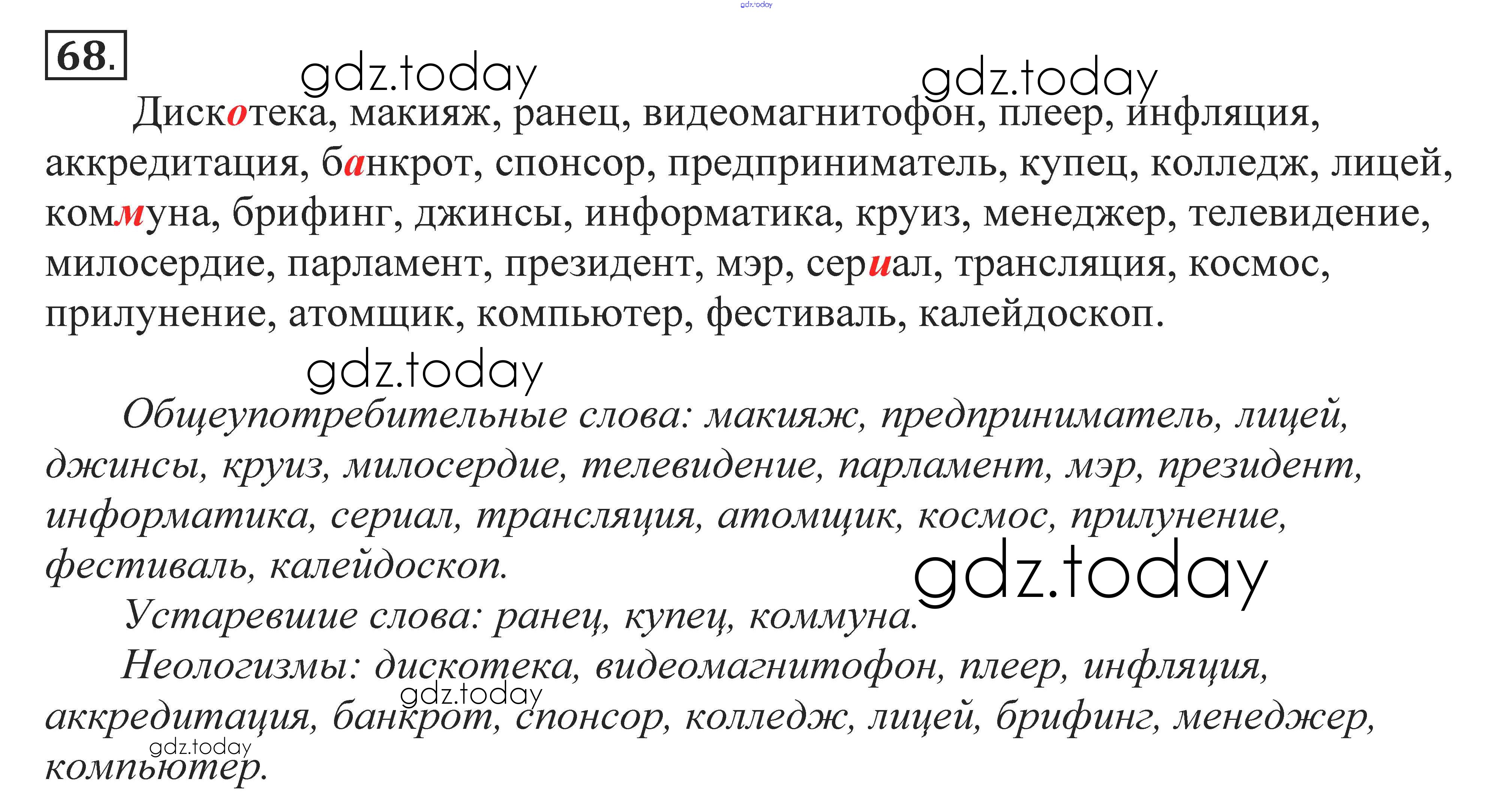 На страницах сайта gdz.today вы найдете учебный и вспомогательный материал, направленный на улучшения знаний школьной программы. ГДЗ - онлайн мир знаний Решение к упражнениям 68 Учебнику по Русскому языку для 10-11 класса Власенков, Рыбченкова Базовый уровень Просвещение 2014