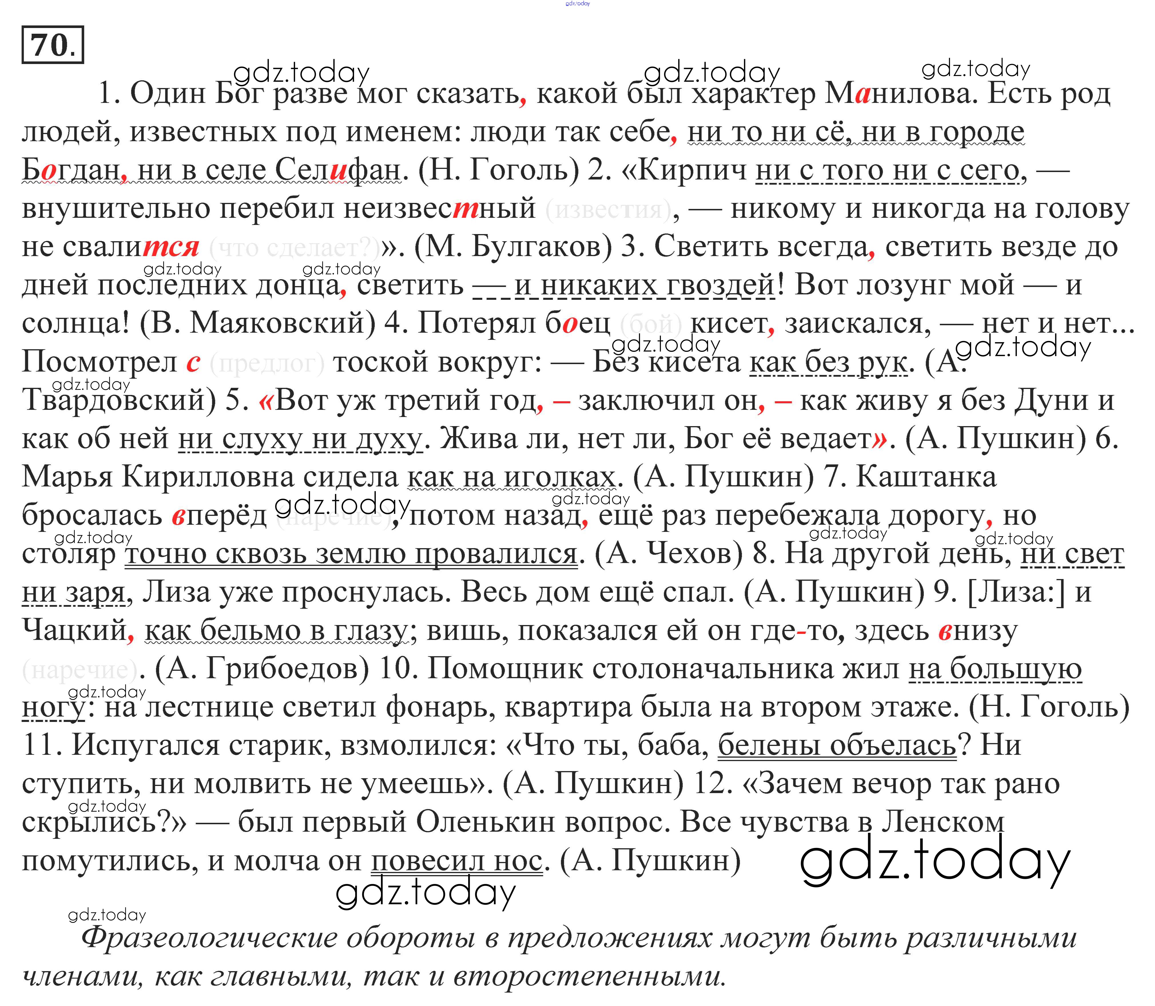На страницах сайта gdz.today вы найдете учебный и вспомогательный материал, направленный на улучшения знаний школьной программы. ГДЗ - онлайн мир знаний Решение к упражнениям 70 Учебнику по Русскому языку для 10-11 класса Власенков, Рыбченкова Базовый уровень Просвещение 2014