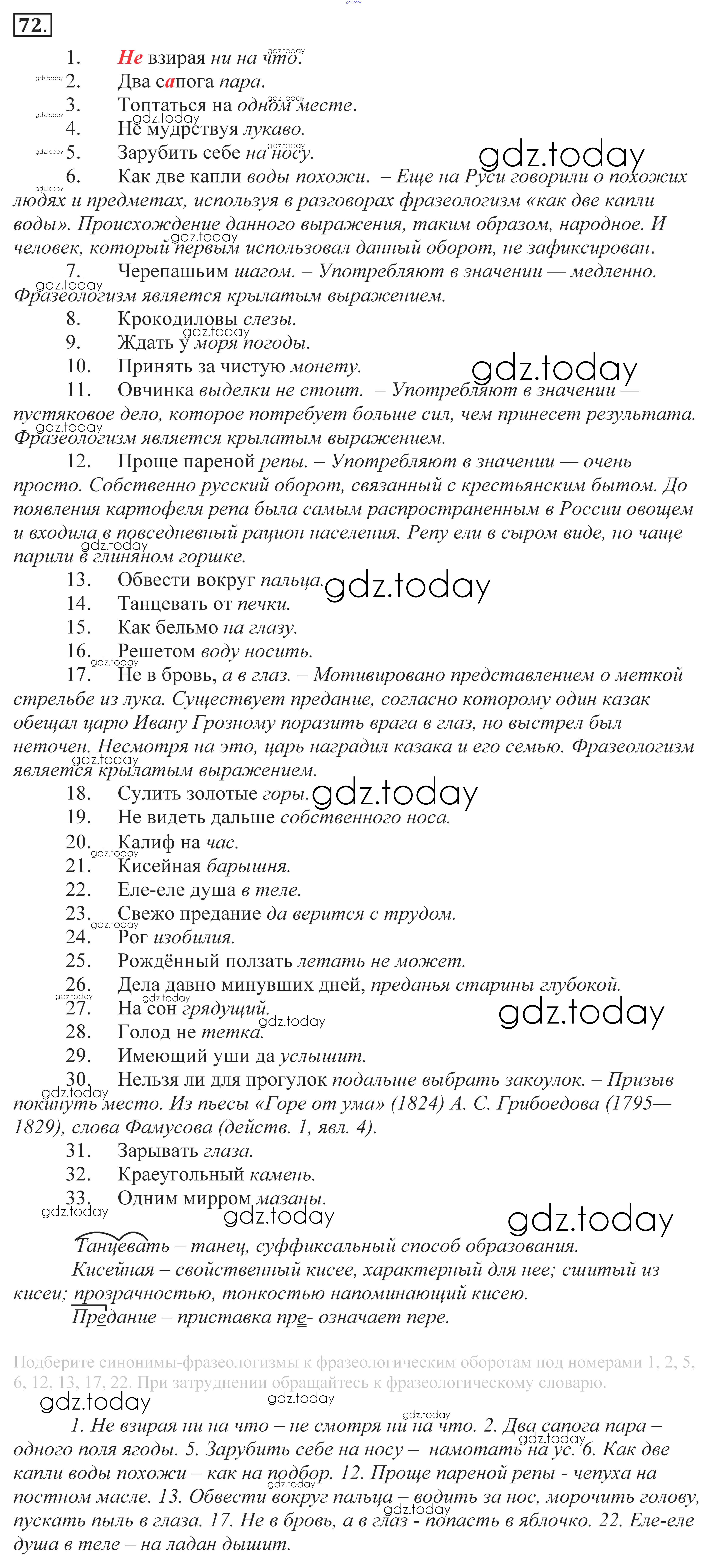 На страницах сайта gdz.today вы найдете учебный и вспомогательный материал, направленный на улучшения знаний школьной программы. ГДЗ - онлайн мир знаний Решение к упражнениям 72 Учебнику по Русскому языку для 10-11 класса Власенков, Рыбченкова Базовый уровень Просвещение 2014