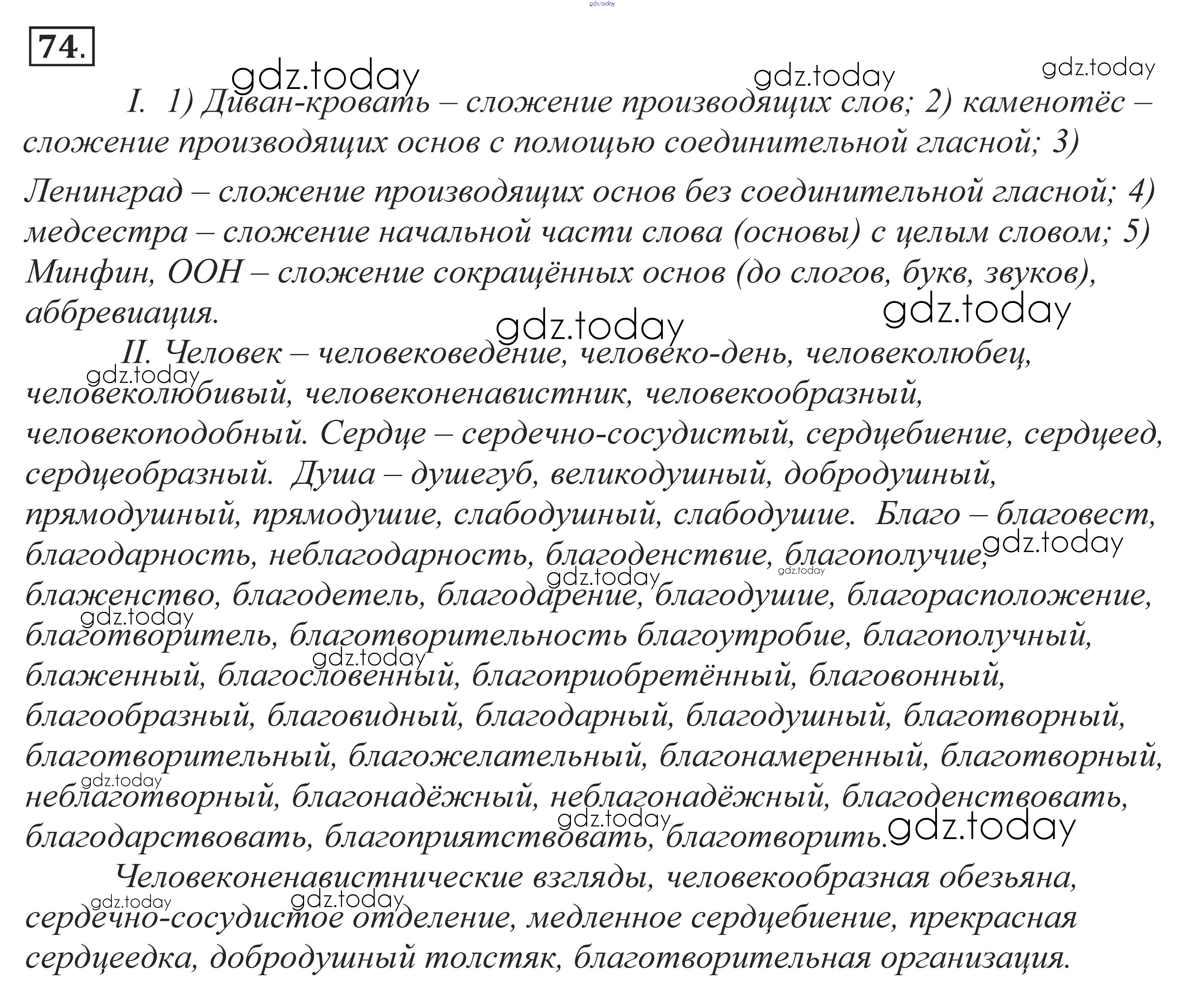 На страницах сайта gdz.today вы найдете учебный и вспомогательный материал, направленный на улучшения знаний школьной программы. ГДЗ - онлайн мир знаний Решение к упражнениям 74 Учебнику по Русскому языку для 10-11 класса Власенков, Рыбченкова Базовый уровень Просвещение 2014