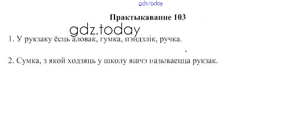 На страницах сайта gdz.today вы найдете учебный и вспомогательный материал, направленный на улучшения знаний школьной программы. ГДЗ - онлайн мир знаний Рашальнік да часткі 1. Практыкаванні 103 Учебнику по Белорусскому языку для 2 класса Свірыдзенка Национальный институт образования 2016
