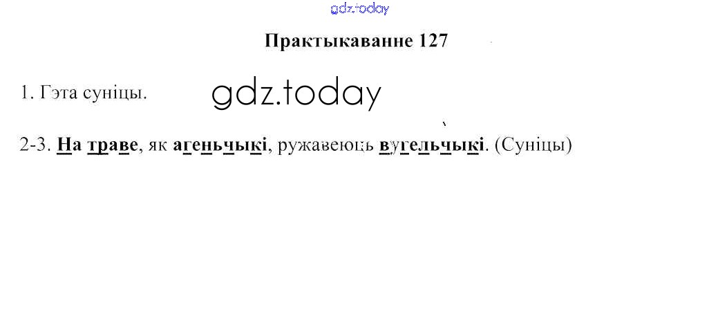 На страницах сайта gdz.today вы найдете учебный и вспомогательный материал, направленный на улучшения знаний школьной программы. ГДЗ - онлайн мир знаний Рашальнік да часткі 1. Практыкаванні 127 Учебнику по Белорусскому языку для 2 класса Свірыдзенка Национальный институт образования 2016