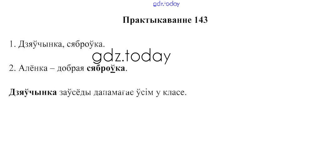 На страницах сайта gdz.today вы найдете учебный и вспомогательный материал, направленный на улучшения знаний школьной программы. ГДЗ - онлайн мир знаний Рашальнік да часткі 1. Практыкаванні 143 Учебнику по Белорусскому языку для 2 класса Свірыдзенка Национальный институт образования 2016