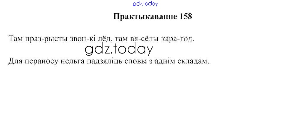 На страницах сайта gdz.today вы найдете учебный и вспомогательный материал, направленный на улучшения знаний школьной программы. ГДЗ - онлайн мир знаний Рашальнік да часткі 1. Практыкаванні 158 Учебнику по Белорусскому языку для 2 класса Свірыдзенка Национальный институт образования 2016
