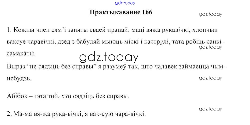 На страницах сайта gdz.today вы найдете учебный и вспомогательный материал, направленный на улучшения знаний школьной программы. ГДЗ - онлайн мир знаний Рашальнік да часткі 1. Практыкаванні 166 Учебнику по Белорусскому языку для 2 класса Свірыдзенка Национальный институт образования 2016