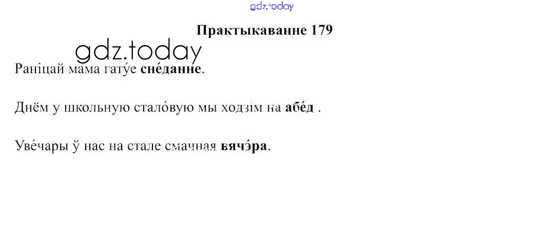 На страницах сайта gdz.today вы найдете учебный и вспомогательный материал, направленный на улучшения знаний школьной программы. ГДЗ - онлайн мир знаний Рашальнік да часткі 1. Практыкаванні 179 Учебнику по Белорусскому языку для 2 класса Свірыдзенка Национальный институт образования 2016