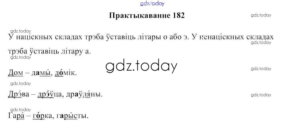 На страницах сайта gdz.today вы найдете учебный и вспомогательный материал, направленный на улучшения знаний школьной программы. ГДЗ - онлайн мир знаний Рашальнік да часткі 1. Практыкаванні 182 Учебнику по Белорусскому языку для 2 класса Свірыдзенка Национальный институт образования 2016