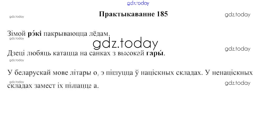 На страницах сайта gdz.today вы найдете учебный и вспомогательный материал, направленный на улучшения знаний школьной программы. ГДЗ - онлайн мир знаний Рашальнік да часткі 1. Практыкаванні 185 Учебнику по Белорусскому языку для 2 класса Свірыдзенка Национальный институт образования 2016