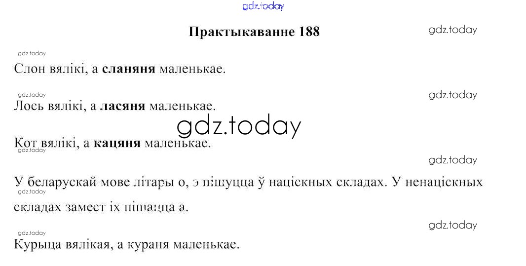 На страницах сайта gdz.today вы найдете учебный и вспомогательный материал, направленный на улучшения знаний школьной программы. ГДЗ - онлайн мир знаний Рашальнік да часткі 1. Практыкаванні 188 Учебнику по Белорусскому языку для 2 класса Свірыдзенка Национальный институт образования 2016
