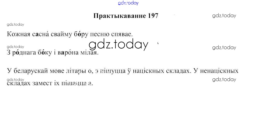 На страницах сайта gdz.today вы найдете учебный и вспомогательный материал, направленный на улучшения знаний школьной программы. ГДЗ - онлайн мир знаний Рашальнік да часткі 1. Практыкаванні 197 Учебнику по Белорусскому языку для 2 класса Свірыдзенка Национальный институт образования 2016