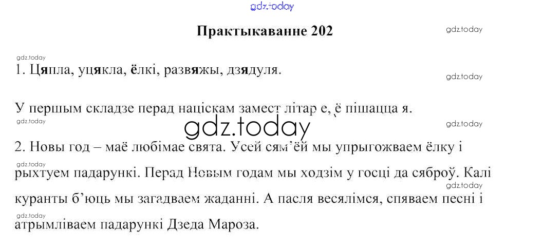 На страницах сайта gdz.today вы найдете учебный и вспомогательный материал, направленный на улучшения знаний школьной программы. ГДЗ - онлайн мир знаний Рашальнік да часткі 1. Практыкаванні 202 Учебнику по Белорусскому языку для 2 класса Свірыдзенка Национальный институт образования 2016