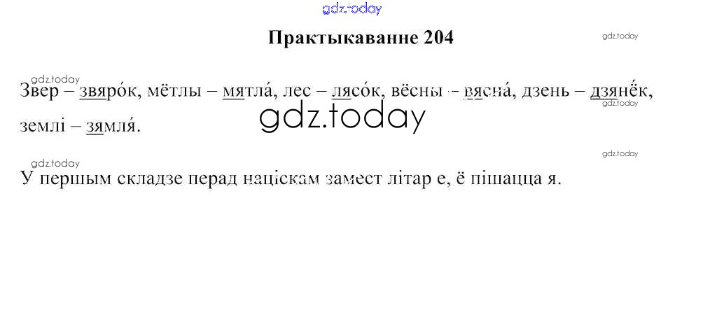На страницах сайта gdz.today вы найдете учебный и вспомогательный материал, направленный на улучшения знаний школьной программы. ГДЗ - онлайн мир знаний Рашальнік да часткі 1. Практыкаванні 204 Учебнику по Белорусскому языку для 2 класса Свірыдзенка Национальный институт образования 2016
