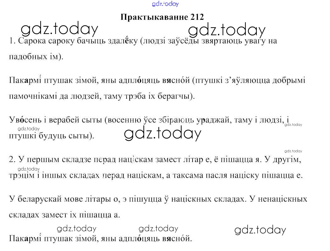 На страницах сайта gdz.today вы найдете учебный и вспомогательный материал, направленный на улучшения знаний школьной программы. ГДЗ - онлайн мир знаний Рашальнік да часткі 1. Практыкаванні 212 Учебнику по Белорусскому языку для 2 класса Свірыдзенка Национальный институт образования 2016