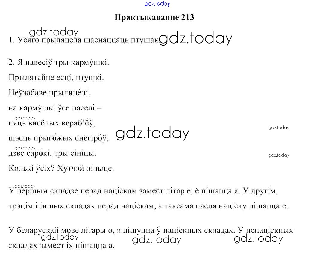 На страницах сайта gdz.today вы найдете учебный и вспомогательный материал, направленный на улучшения знаний школьной программы. ГДЗ - онлайн мир знаний Рашальнік да часткі 1. Практыкаванні 213 Учебнику по Белорусскому языку для 2 класса Свірыдзенка Национальный институт образования 2016