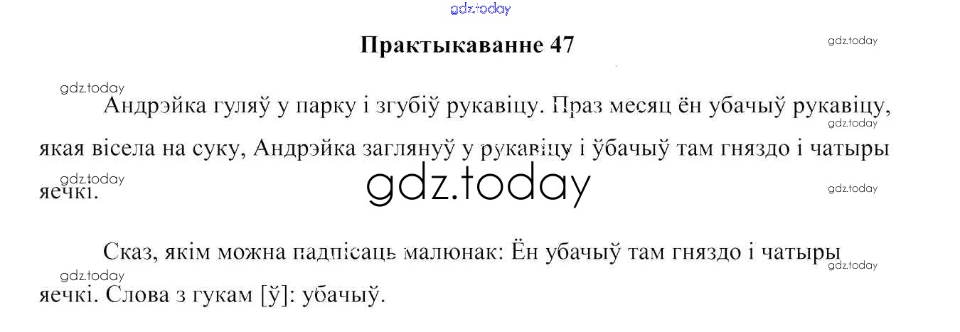 На страницах сайта gdz.today вы найдете учебный и вспомогательный материал, направленный на улучшения знаний школьной программы. ГДЗ - онлайн мир знаний Рашальнік да часткі 1. Практыкаванні 47 Учебнику по Белорусскому языку для 2 класса Свірыдзенка Национальный институт образования 2016