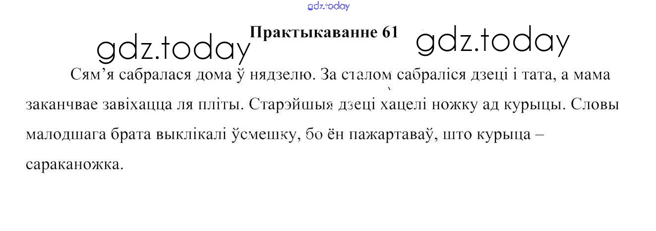 На страницах сайта gdz.today вы найдете учебный и вспомогательный материал, направленный на улучшения знаний школьной программы. ГДЗ - онлайн мир знаний Рашальнік да часткі 1. Практыкаванні 61 Учебнику по Белорусскому языку для 2 класса Свірыдзенка Национальный институт образования 2016