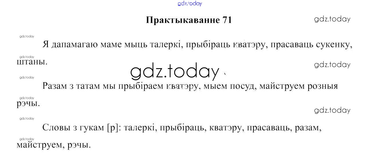 На страницах сайта gdz.today вы найдете учебный и вспомогательный материал, направленный на улучшения знаний школьной программы. ГДЗ - онлайн мир знаний Рашальнік да часткі 1. Практыкаванні 71 Учебнику по Белорусскому языку для 2 класса Свірыдзенка Национальный институт образования 2016