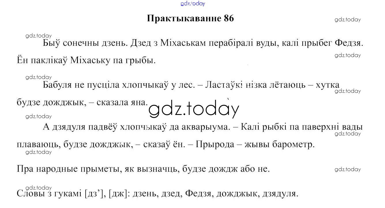 На страницах сайта gdz.today вы найдете учебный и вспомогательный материал, направленный на улучшения знаний школьной программы. ГДЗ - онлайн мир знаний Рашальнік да часткі 1. Практыкаванні 86 Учебнику по Белорусскому языку для 2 класса Свірыдзенка Национальный институт образования 2016