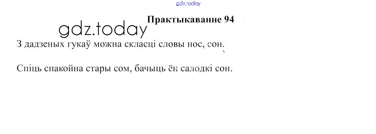 На страницах сайта gdz.today вы найдете учебный и вспомогательный материал, направленный на улучшения знаний школьной программы. ГДЗ - онлайн мир знаний Рашальнік да часткі 1. Практыкаванні 94 Учебнику по Белорусскому языку для 2 класса Свірыдзенка Национальный институт образования 2016