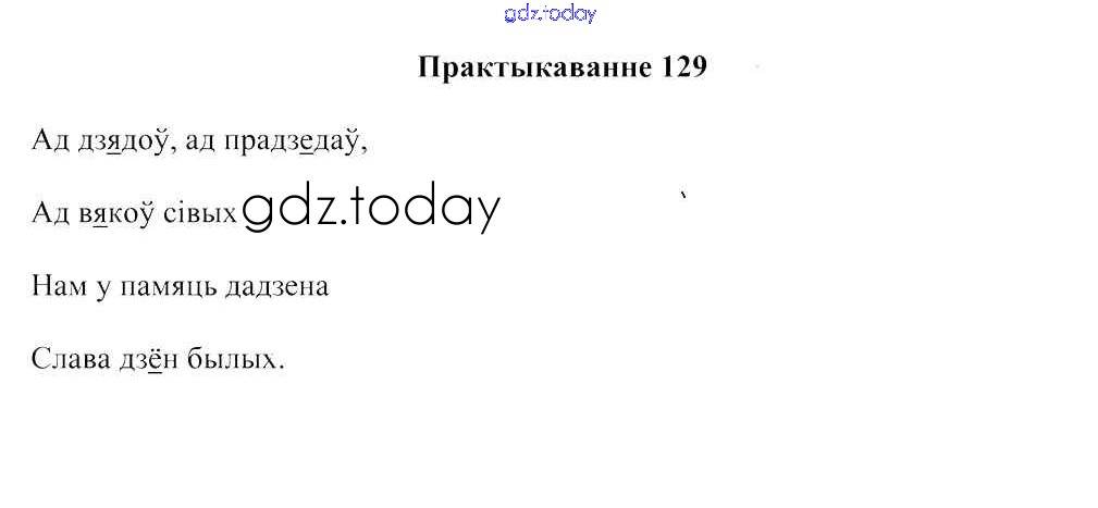 На страницах сайта gdz.today вы найдете учебный и вспомогательный материал, направленный на улучшения знаний школьной программы. ГДЗ - онлайн мир знаний Рашальнік да часткі 2. Практыкаванні 129 Учебнику по Белорусскому языку для 2 класса Свірыдзенка Национальный институт образования 2016