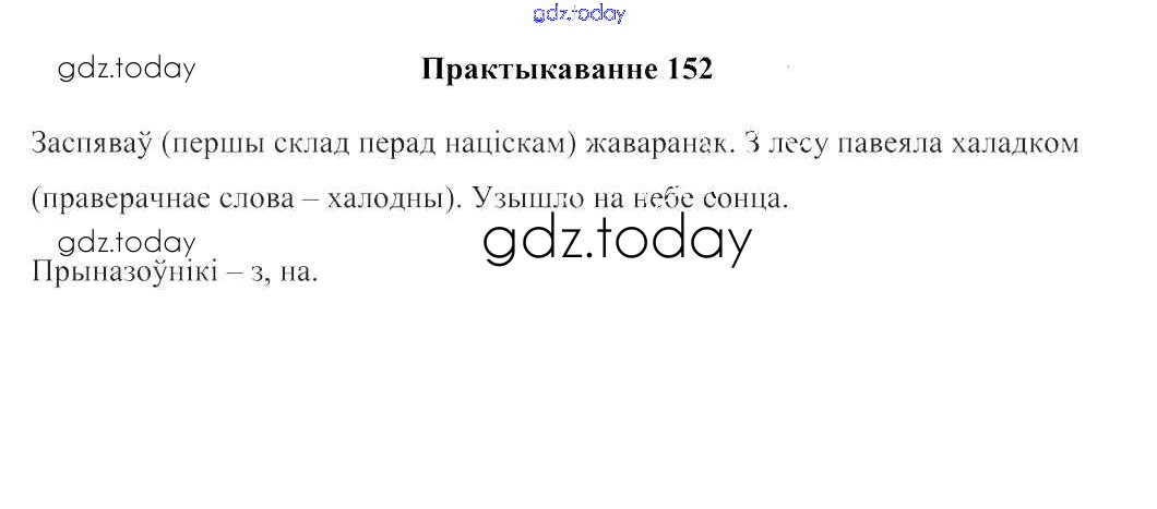 На страницах сайта gdz.today вы найдете учебный и вспомогательный материал, направленный на улучшения знаний школьной программы. ГДЗ - онлайн мир знаний Рашальнік да часткі 2. Практыкаванні 152 Учебнику по Белорусскому языку для 2 класса Свірыдзенка Национальный институт образования 2016
