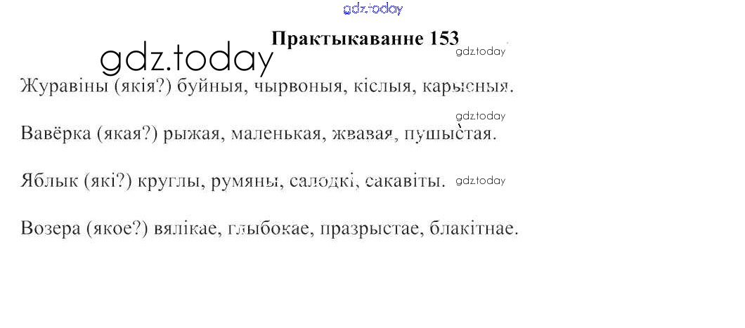 На страницах сайта gdz.today вы найдете учебный и вспомогательный материал, направленный на улучшения знаний школьной программы. ГДЗ - онлайн мир знаний Рашальнік да часткі 2. Практыкаванні 153 Учебнику по Белорусскому языку для 2 класса Свірыдзенка Национальный институт образования 2016