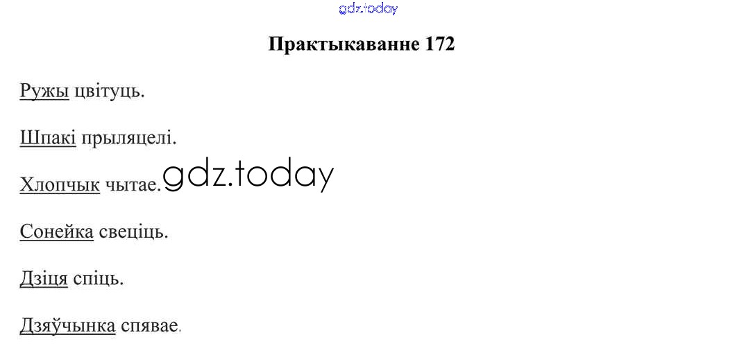 На страницах сайта gdz.today вы найдете учебный и вспомогательный материал, направленный на улучшения знаний школьной программы. ГДЗ - онлайн мир знаний Рашальнік да часткі 2. Практыкаванні 172 Учебнику по Белорусскому языку для 2 класса Свірыдзенка Национальный институт образования 2016