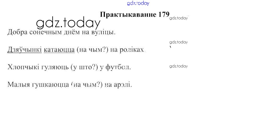 На страницах сайта gdz.today вы найдете учебный и вспомогательный материал, направленный на улучшения знаний школьной программы. ГДЗ - онлайн мир знаний Рашальнік да часткі 2. Практыкаванні 179 Учебнику по Белорусскому языку для 2 класса Свірыдзенка Национальный институт образования 2016