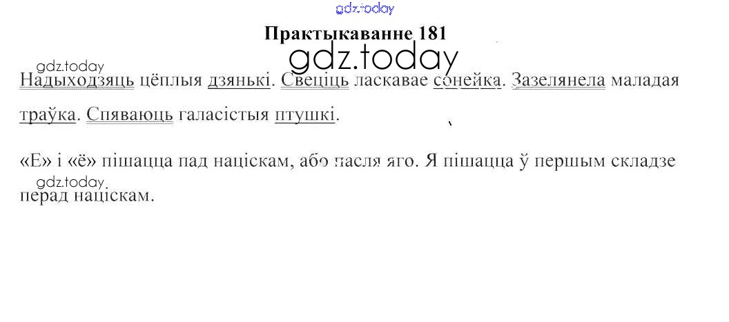 На страницах сайта gdz.today вы найдете учебный и вспомогательный материал, направленный на улучшения знаний школьной программы. ГДЗ - онлайн мир знаний Рашальнік да часткі 2. Практыкаванні 181 Учебнику по Белорусскому языку для 2 класса Свірыдзенка Национальный институт образования 2016