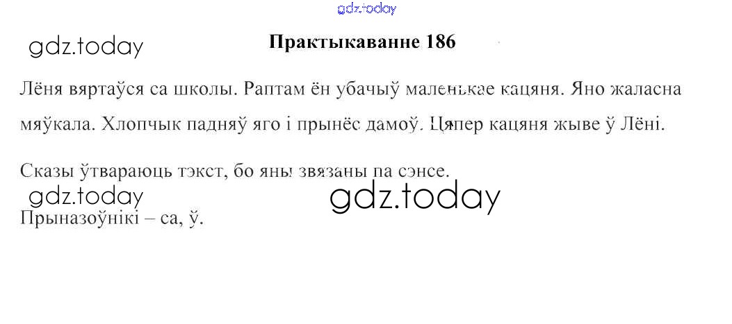 На страницах сайта gdz.today вы найдете учебный и вспомогательный материал, направленный на улучшения знаний школьной программы. ГДЗ - онлайн мир знаний Рашальнік да часткі 2. Практыкаванні 186 Учебнику по Белорусскому языку для 2 класса Свірыдзенка Национальный институт образования 2016