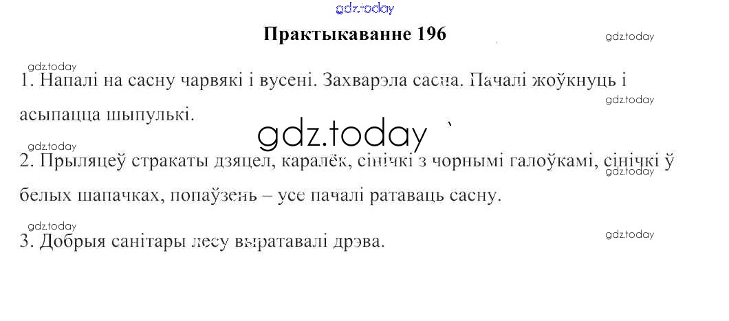 На страницах сайта gdz.today вы найдете учебный и вспомогательный материал, направленный на улучшения знаний школьной программы. ГДЗ - онлайн мир знаний Рашальнік да часткі 2. Практыкаванні 196 Учебнику по Белорусскому языку для 2 класса Свірыдзенка Национальный институт образования 2016