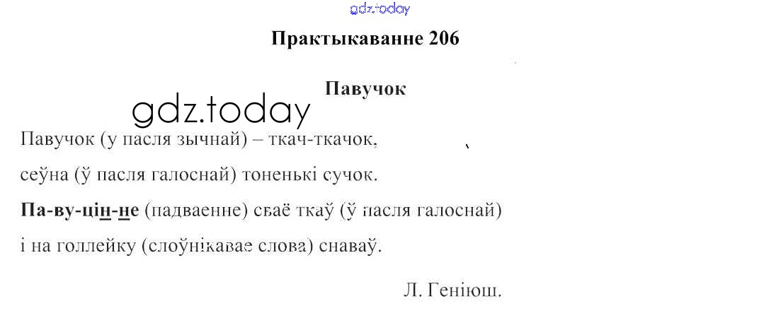 На страницах сайта gdz.today вы найдете учебный и вспомогательный материал, направленный на улучшения знаний школьной программы. ГДЗ - онлайн мир знаний Рашальнік да часткі 2. Практыкаванні 206 Учебнику по Белорусскому языку для 2 класса Свірыдзенка Национальный институт образования 2016