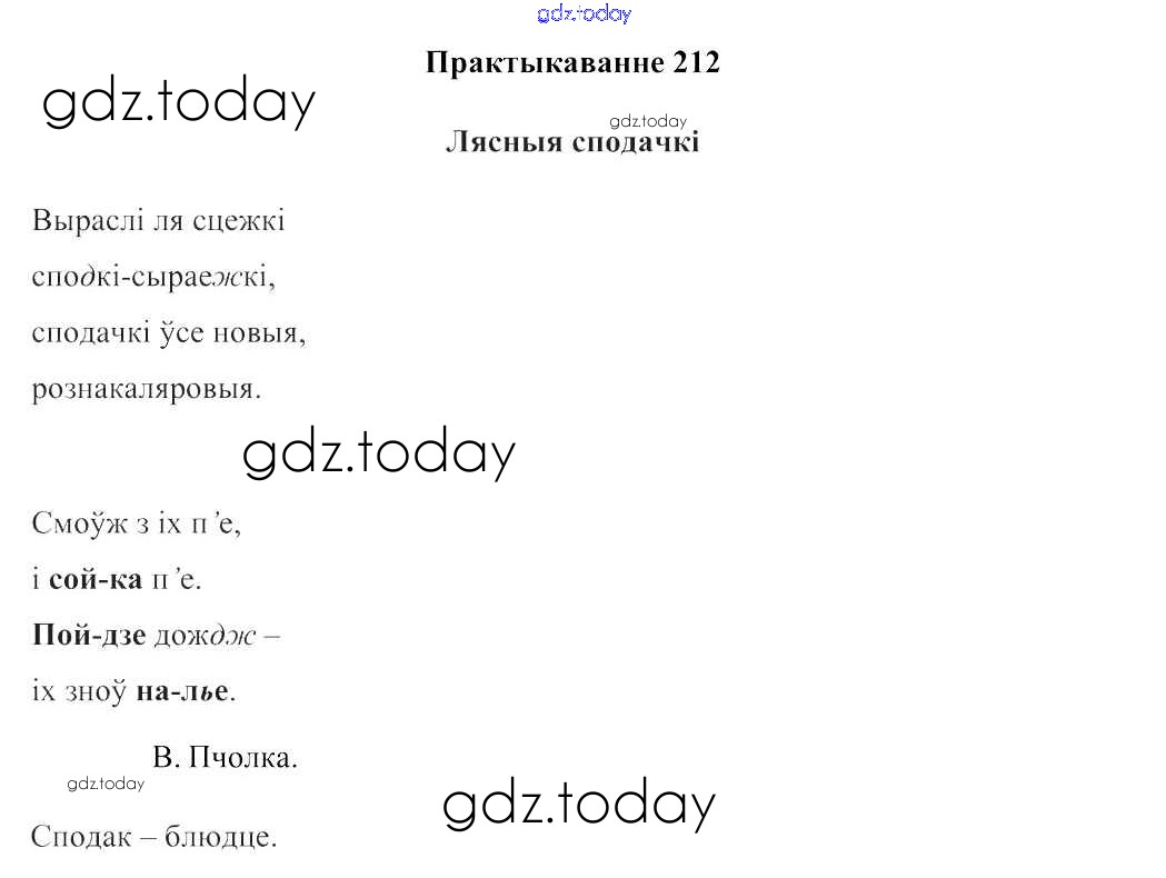 На страницах сайта gdz.today вы найдете учебный и вспомогательный материал, направленный на улучшения знаний школьной программы. ГДЗ - онлайн мир знаний Рашальнік да часткі 2. Практыкаванні 212 Учебнику по Белорусскому языку для 2 класса Свірыдзенка Национальный институт образования 2016
