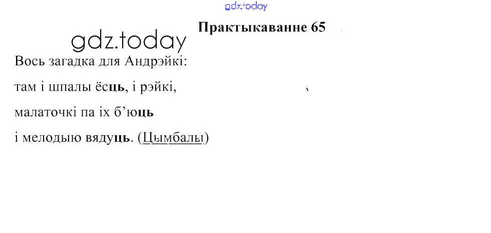 На страницах сайта gdz.today вы найдете учебный и вспомогательный материал, направленный на улучшения знаний школьной программы. ГДЗ - онлайн мир знаний Рашальнік да часткі 2. Практыкаванні 65 Учебнику по Белорусскому языку для 2 класса Свірыдзенка Национальный институт образования 2016
