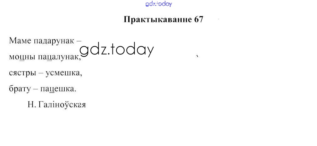 На страницах сайта gdz.today вы найдете учебный и вспомогательный материал, направленный на улучшения знаний школьной программы. ГДЗ - онлайн мир знаний Рашальнік да часткі 2. Практыкаванні 67 Учебнику по Белорусскому языку для 2 класса Свірыдзенка Национальный институт образования 2016