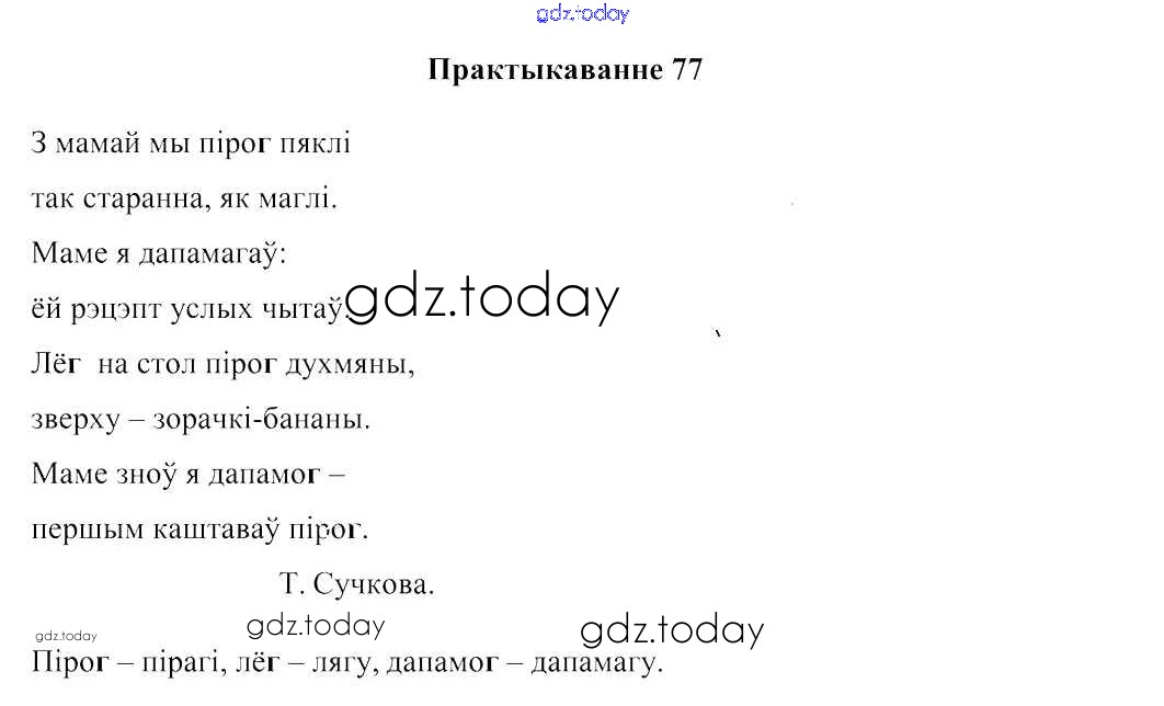 На страницах сайта gdz.today вы найдете учебный и вспомогательный материал, направленный на улучшения знаний школьной программы. ГДЗ - онлайн мир знаний Рашальнік да часткі 2. Практыкаванні 77 Учебнику по Белорусскому языку для 2 класса Свірыдзенка Национальный институт образования 2016