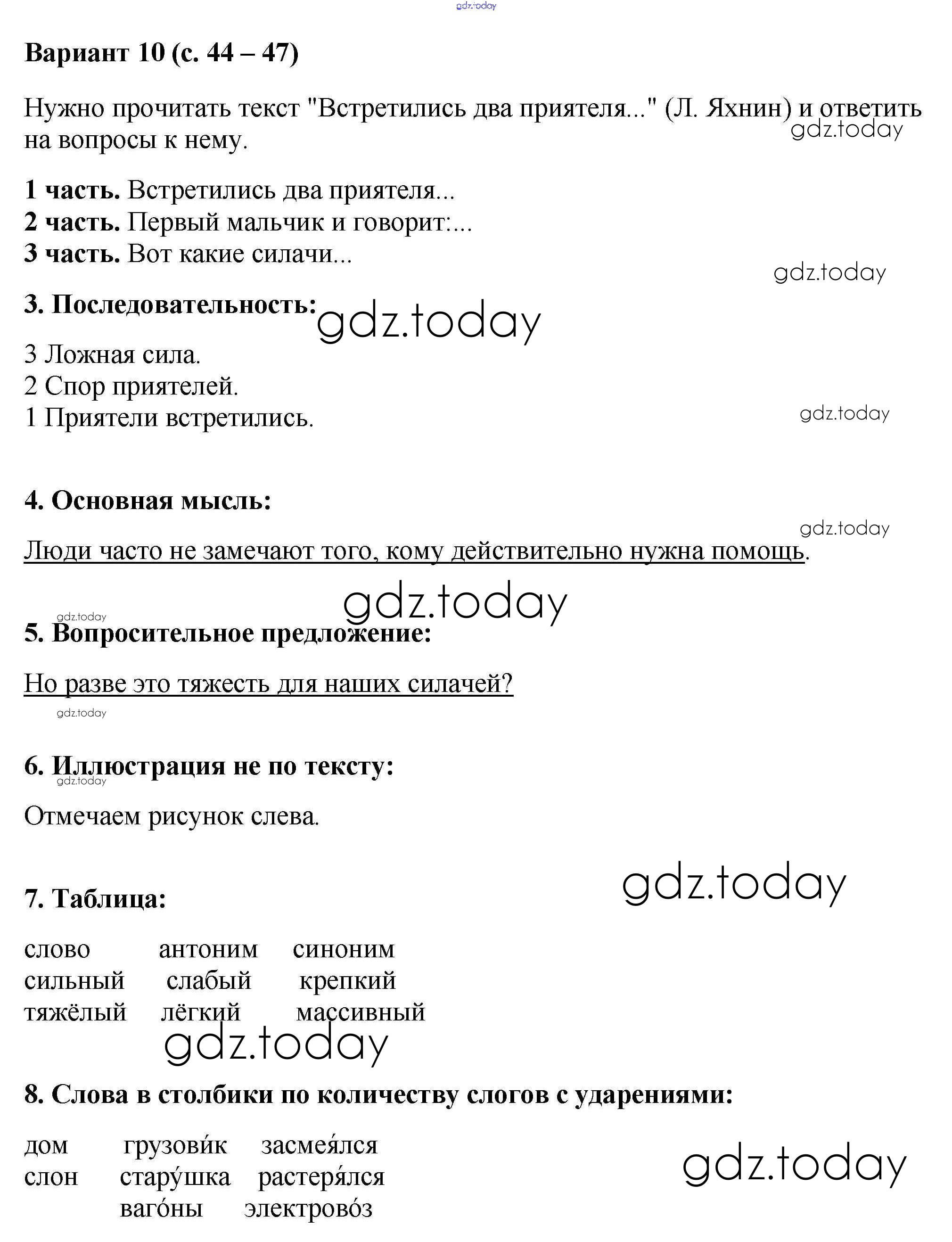 На страницах сайта gdz.today вы найдете учебный и вспомогательный материал, направленный на улучшения знаний школьной программы. ГДЗ - онлайн мир знаний Варианты (решение) 10 Работе с текстом по Чтению для 2 класса Крылова Экзамен УМК 2020