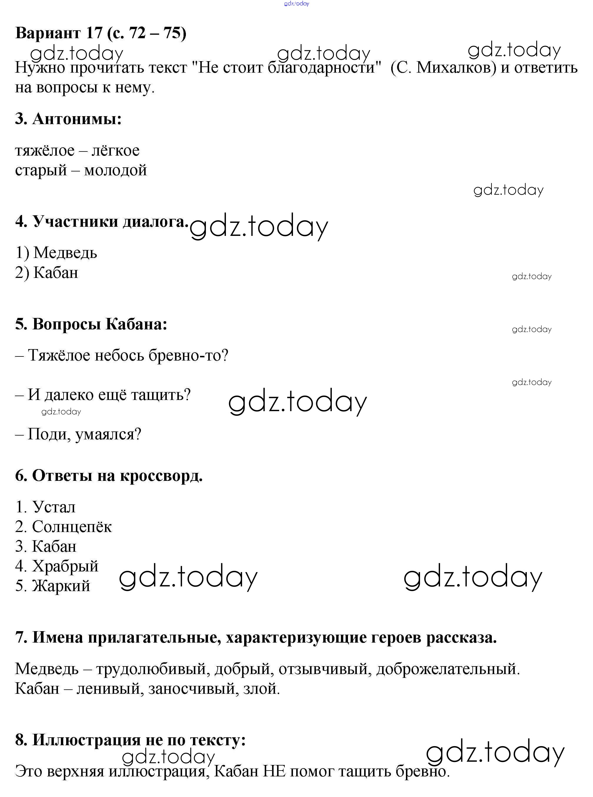 На страницах сайта gdz.today вы найдете учебный и вспомогательный материал, направленный на улучшения знаний школьной программы. ГДЗ - онлайн мир знаний Варианты (решение) 17 Работе с текстом по Чтению для 2 класса Крылова Экзамен УМК 2020