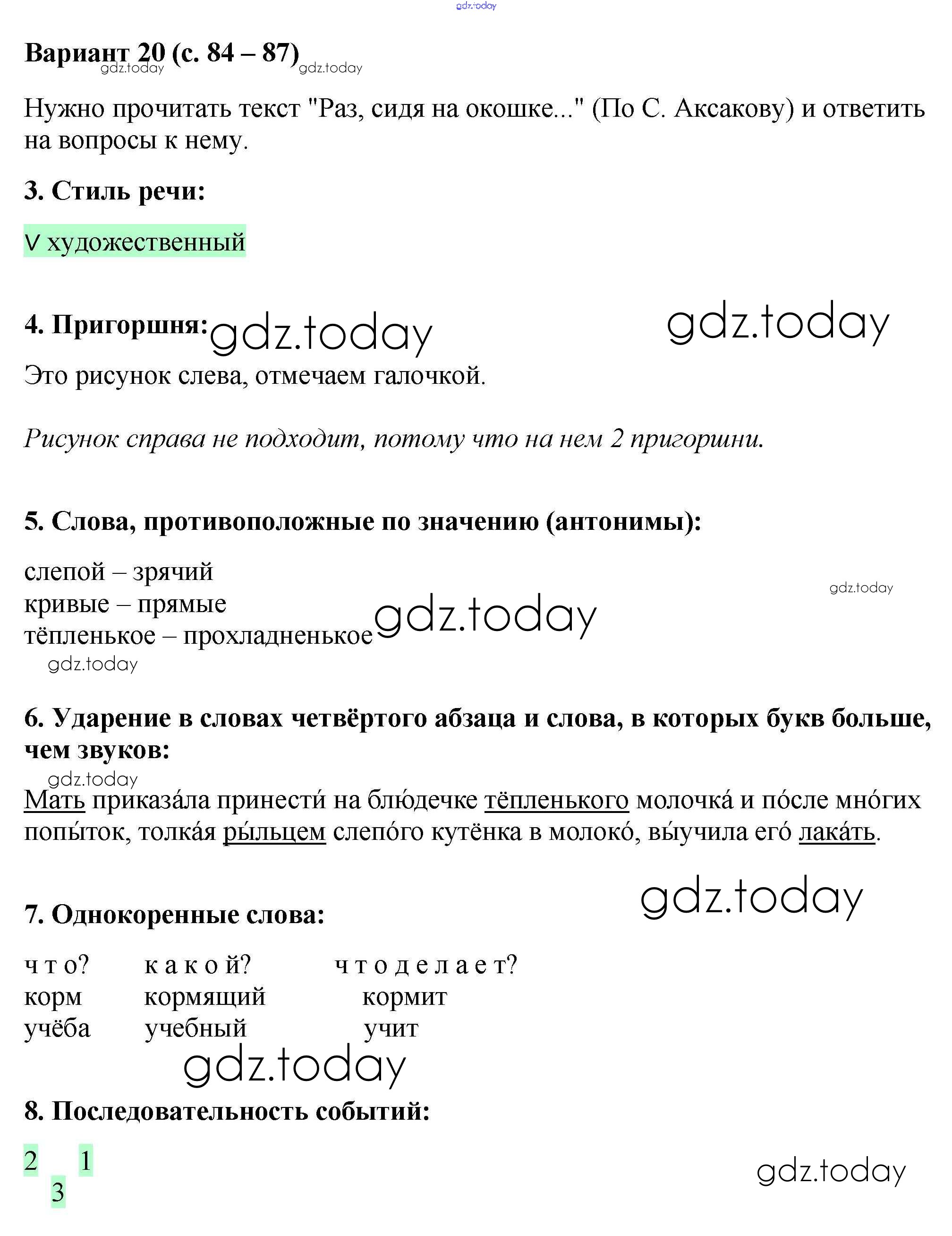 На страницах сайта gdz.today вы найдете учебный и вспомогательный материал, направленный на улучшения знаний школьной программы. ГДЗ - онлайн мир знаний Варианты (решение) 20 Работе с текстом по Чтению для 2 класса Крылова Экзамен УМК 2020
